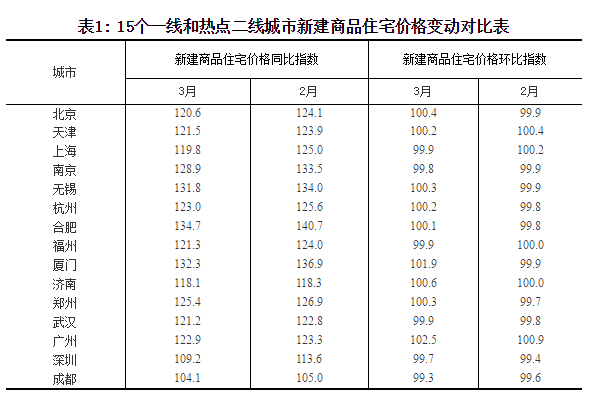 3月份是房地产传统销售旺季,但在因地制宜、因城施策的房地产调控政策作用下,15个一线和热点二线城市新建商品住宅价格同比涨幅继续回落,环比总体平稳。从同比看,3月份15个城市新建商品住宅价格涨幅均比上月回落,回落幅度在0.2至6.0个百分点之间。从环比看,6个城市新建商品住宅价格比上月下降,降幅在0.1至0.7个百分点之间;6个城市涨幅在0.5%以内。据调查了解,3月18-31日,北京市新建商品住宅日均成交套数减少,二手住宅日均购房资格申请量下降,住宅交易三方合同成交笔数锐减。