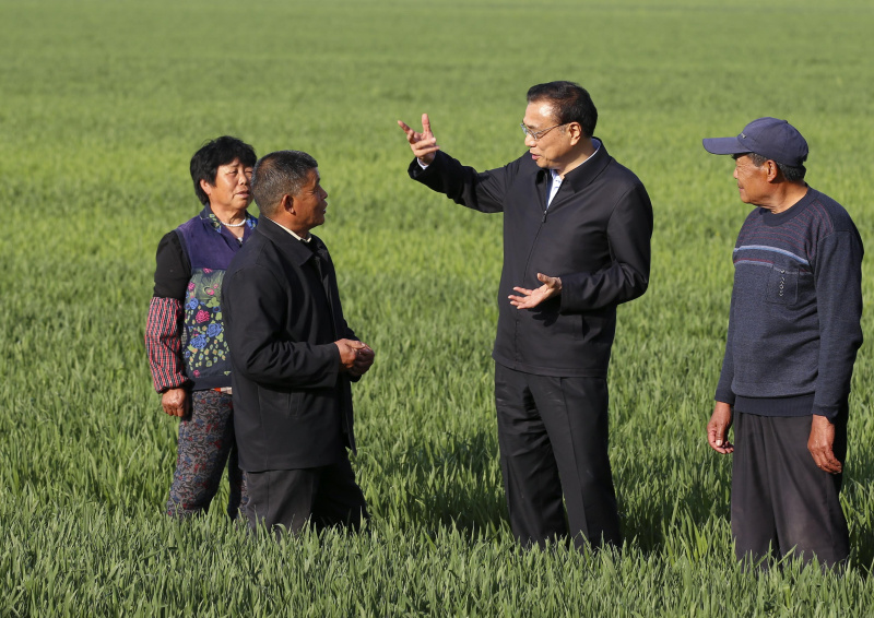 【总理为农机合作社理事长支三招】李克强20日来到济南曲家村察看春季小麦长势。得知村民孙玉河依托300亩流转土地成立农机合作社,总理给这位理事长支了三招:一是坚持走合作社路子,发展多种形式适度规模经营;二是拓展农机服务,做好亦农亦工;三是改良品种,发展订单农业,以精细化促农业提质增效。