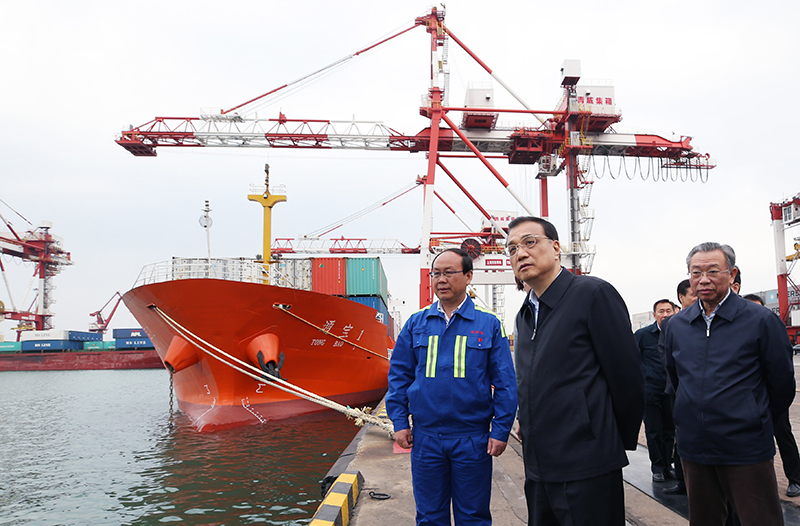 五颜六色的集装箱整齐码放在海岸边,高高耸立的起重机正在繁忙运转。4月19日下午,坐落于山东半岛东侧的威海港,成为李克强总理山东考察的第一站。