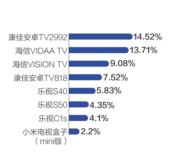 2016年市场活跃度前几名智能电视/盒子型号(见图)