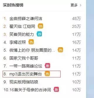 “MP3退出历史舞台”一度引发网友集体怀旧,相关话题上了微博热搜排行榜。