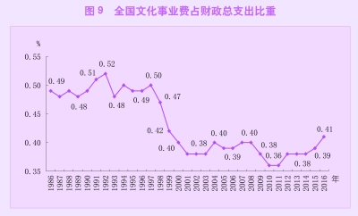 文化事业费占财政总支出的比重为0.41%,比重比上年提高0.02个百分点。