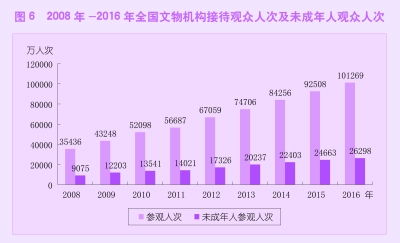 全年全国文物机构共安排基本陈列12203个,比上年增长12.4%;举办临时展览12420个,比上年增长5.2%;接待观众101269万人次,比上年增长9.5%。其中未成年人26298万人次,增长6.7%,占参观总人数的26.0%。博物馆接待观众85062万人次,增长8.9%,占文物机构接待观众84.0%。