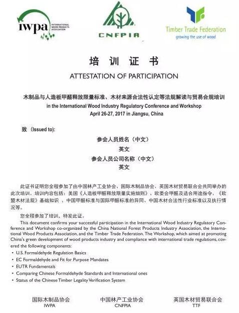 近年来,美国、欧盟相继颁布和实施了《 人造板甲醛释放限量实施细则》、《 欧盟木材法规》等有关甲醛及木材合法性的法规、指令和要求等,对我国木材、人造板、地板、家具等各类林产品出口企业的生产和贸易产生了重大影响。为了持续维护中国林产品进出口贸易公平竞争、互惠共赢的大环境,中国林产工业协会一直在与林产品主要国际贸易国行业协会及政府进行着对话、交流、协调,并组织大量专家对相关标准、法规等进行了系统、深入、专门的研究。这次研修班也正是为了让国内林产品贸易企业更好的与国际行业接轨,更好地了解学习并掌握国际新出标准、法规、细则、指令的内容和要求等而召开的,正如Cindy 秘书长在致辞中说的,希望通过宣讲、研修、培训,为出口美国,欧盟的企业打开林产品进入市场的窗口,构建和维护顺畅的国际贸易平台。本次研修班的顺利召开,将为中国人造板企业对接美国、欧盟市场产生积极的影响,也为美国、欧盟了解中国人造板行业提供重要的平台。