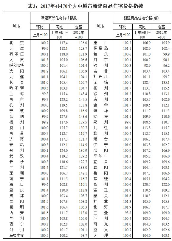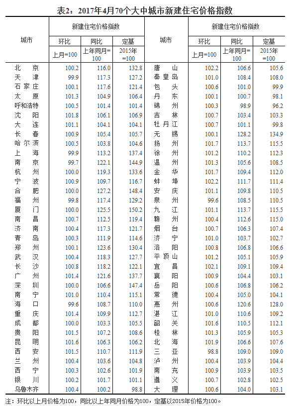 国家统计局今日发布了2017年4月份70个大中城市住宅销售价格统计数据。对此,国家统计局城市司高级统计师刘建伟进行了解读。