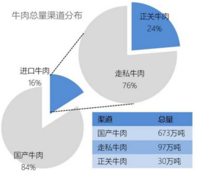 根据MIG集团的研究报告,2014年,中国市场上通过正规关税渠道进口的牛肉大约为30万吨,但走私牛肉高达97万吨,占全部进口牛肉份额的76%。