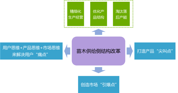 总之,苗木产业创新发展,就是要用市场导向和用户思维,进行供给侧结构改革,在产业结构、产品品质、生产技术和经营模式创新的基础上,从供需两端发力,重点解决“生产”和“销售”问题。在苗木营销上,打破传统的单纯买卖和推销模式,充分利用互联网和大数据,进行产品定位和品牌创建,实现产销供需“无缝对接”,提供种植养护技术系统解决方案与个性化服务,为用户创造价值,从而形成独特的商业价值和竞争优势。同时,苗木生产经营还要与资本市场对接,突破“融资难、融资贵”的瓶颈,实现资产证券化,这样才能更好地促进产业发展提升。