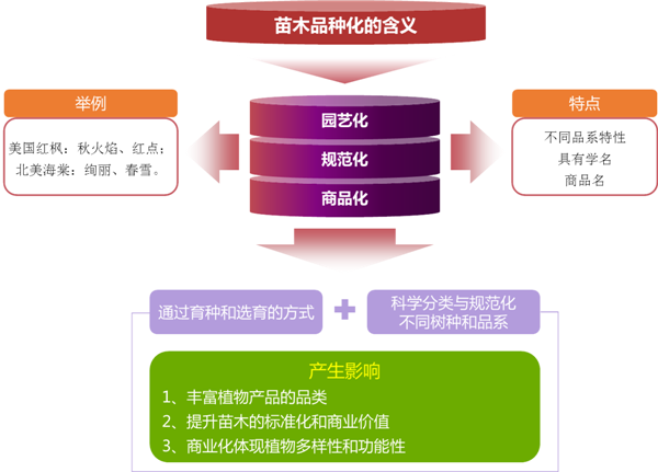首先强调品种,是因为苗木产业有一个非常重要,也是迄今没有解决的问题,就是苗木的品种化。品种化是苗木产业提升的一个大问题。我国的园林苗木生产面积和产销量上是世界最大的,但在苗木研发和品种化上却远落后于发达国家。中国苗木产业要发展提升,品种化是绕不过去的坎,从某种程度上说,没有品种化就没有苗木的产业化和现代化。从技术与经营角度评判,不解决苗木品种化以及新优品种的研发、生产和推广应用问题,行业再做一百年也是落后的。我国有3万多种高等植物,但在园林苗木,尤其是大乔木方面,几乎没有实现品种化。非常希望能够在引进国外优势园艺树种的同时,从乡土树种中不断选育和推出属于中国原创的园艺品种,尤其是能做行道树的观花观叶观果乔木品种,让乡土树新优品种成为苗木市场的“宠儿”和景观应用的主角,这样方能对得起中国“世界园林之母”的称誉。