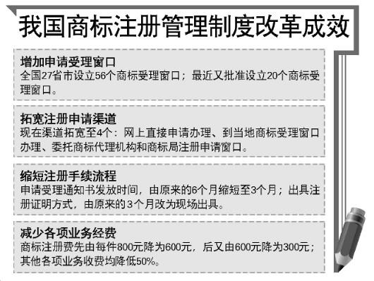 与此同时,注册手续流程也在不断简化。这其中包括:2016年10月底,通过调整工作流程等方式,将商标注册申请受理通知书发放时间,由原来的6个月缩短至3个月以内。
