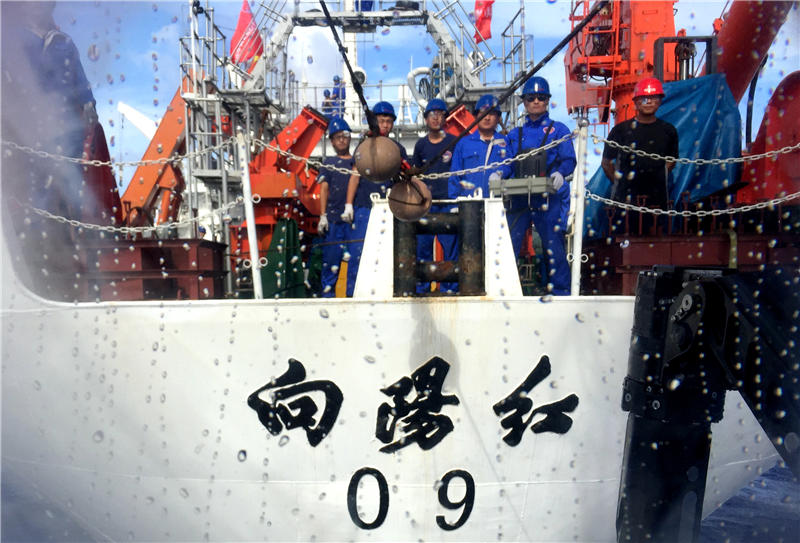 5月23日,“蛟龙”号在马里亚纳海沟获取岩石样品。新华社记者 刘诗平 摄
