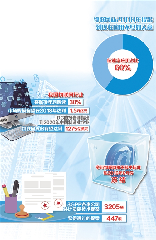 不仅如此,“技术标准的迅速确立为其进入商用阶段奠定了基础。”潘文指出,我国企业参与的窄带物联网技术标准快速确立,技术协议从立项到协议冻结仅仅用时不到8个月,成为史上建立最快的3GPP标准之一。
