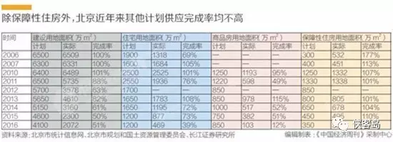 如果这一计划得以落实,将很大机会逆转供求失衡、房价上涨预期。但问题的关键恰恰是,北京的宅地供应计划能否完成?一个不容忽视的事实是,2013年至2016年间,北京的供地计划基本上就没完成过。尤其是2016年,土地供应可谓十分惨淡,部分供应的地块位于郊区,绝对数量也不多,商品房实际供地完成率仅为12.1%。更何况,“以房控人”本身就是北京疏解人口的手段,土地供应不那么积极也就可以理解了。