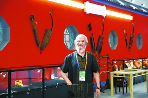 潘家园内的聚元号第十代传人、国家级非遗传承人杨福喜带着他的弓箭亮相展厅。聚元号弓箭铺有近300年的历史,是中国现存惟一一家完整保存传统弓箭制作技艺的弓箭铺,在乾隆时期,成为皇家御用弓箭的制作地。毛主席也曾在聚元号定制过弓箭用作收藏,并且对其精湛的技艺称赞不已。据杨福喜介绍,一把聚元号弓箭至少需要手工慢活5个月以上,用上好的牛骨、牛筋、竹子等制成,价格少则3万-5万元,多则10万元以上。聚元号弓箭因力道精准、装饰画工细腻、历史悠久,也成为时下年轻人的收藏新宠。