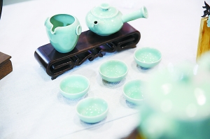 值得一提的是,曾为皇宫贵族宠儿的康熙年间内画鼻烟壶也在展厅出现,青花加紫的“炮筒瓶”瓶身绘有颐和园十七孔桥,还有当时官员太监抬着皇帝在爬山的场景,画面惟妙惟肖、栩栩如生。画工精致、釉水肥厚的康熙青花瓷器杯盘、高足杯也一同亮相。除此之外,此次展出的还有高级工艺美术师徐象龙创作的梅子青釉龙耳樽、高级工艺美术师周华创作的粉青釉方耳樽,大师工艺令人称绝。