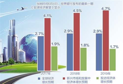 本报华盛顿电 记者高伟东报道:世界银行当日发布的2017年6月期《全球经济展望》预测,随着制造业和贸易回暖、市场信心增强以及大宗商品价格趋稳,出口大宗商品的新兴市场和发展中经济体得以恢复增长,2017年全球经济增长将加快至2.7%。