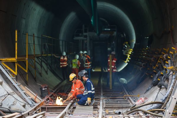 中国企业承建的特拉维夫轻轨项目施工现场。新华社记者 郭昱 摄