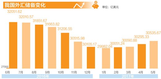 中国人民银行最新公布的数据显示,5月末,我国外汇储备规模为30536亿美元,较4月末小幅上升240亿美元,增幅0.8%,连续第四个月出现回升。今年1月,外汇储备跌破3万亿美元,此后开始连续回升。