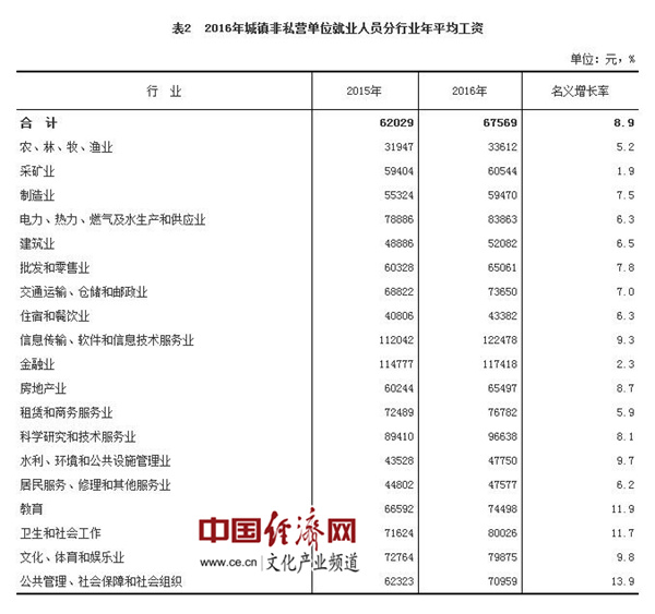 不过,城镇非私营单位的文体娱业就业人平工资为79875元,比2015年的72764元高出7111元,名义增长率为9.8%,与整体城镇非私营单位就业人年均工资相比,高出12306元,位列19个行业中的第9位。