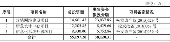 日播时尚本次募集资金净额38,120.31 万元用于营销网络建设项目、研发设计中心项目、信息化系统升级项目。