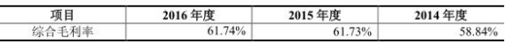 招股书显示,2012-2016年,公司综合毛利率分别为57.16%、58.73%、58.84%、61.73%、61.74%。公司称,2014年度、2015年度和2016年度,公司的综合毛利率分别为58.84%、61.73%和 61.74%,维持在相对较高水平。公司的综合毛利率水平主要受商品倍率、各销售渠道销售折扣以及销售渠道分布情况的影响。报告期内,公司综合毛利率保持小幅上升趋势。