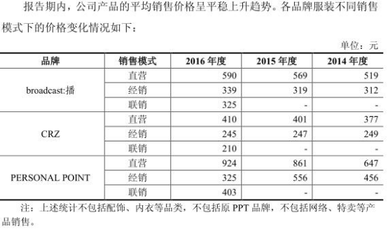 报告期内,公司产品中 broadcast:播和 CRZ 的毛利率相近,而 PERSONALPOINT 毛利率较低,主要系公司于 2014 年对 PERSONAL POINT 品牌完成重新定位后对原品牌货品进行处理,报告期内原品牌库存逐步下降, PERSONALPOINT 新品比例不断上升,导致 PERSONAL POINT 毛利率逐步上升。
