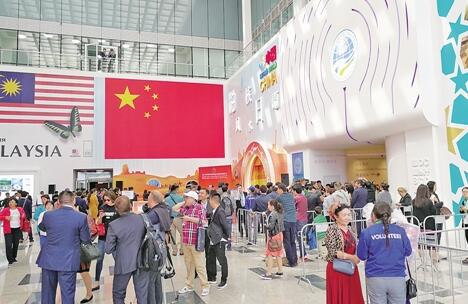 以“未来能源,绿色丝路”主题框架搭建的中国馆在阿斯塔纳专项世博会上全面展示了中国开发、利用和保护新能源的实践以及对未来能源发展的思考,同时深刻地诠释了“一带一路”建设中的绿色发展理念。图为中国馆前,参观者络绎不绝。 李遥远摄