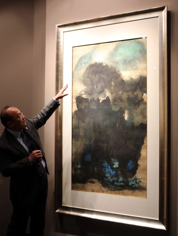 日前,在佳士得的香港拍卖会上,张大千1965年的“泼墨”卷轴《云山古寺》由一位电话竞拍者以含佣金1.25亿港元(约合1.09亿元人民币)的价格拍下。这幅画是张大千作品拍出的第六高价,这位云游四海的高产画家的作品被大量仿冒,他本人也颇为乐于仿其他中国大师的画作。本次拍卖的作品来自于著名的梅云堂旧藏,由摄影师高岭梅及其妻詹云白自1940年代开始收集整理。