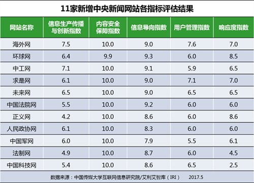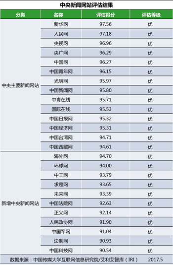 中央新闻网站总分情况如下: