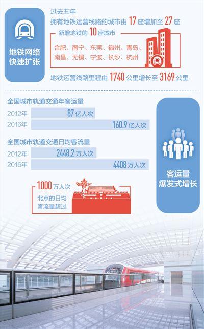 石家庄、乌鲁木齐、长春……近期即将首次开通地铁的城市真不少。据国家发改委基础产业司副司长任虹介绍,截至2016年底,获准建设城市轨道交通的城市由2012年的35个增加到43个。地铁作为城市轨道交通的主要系统制式,发展尤为迅速:过去5年,拥有地铁运营线路的城市由17座增加至27座,运营线路里程由1740公里增长至3169公里。