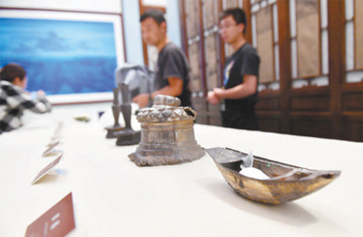 何刚捐赠给故宫的银錾刻船。新华社记者 金良快摄