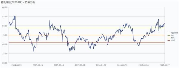腾讯的净利润从2009年的8亿美元增长至2016年的60亿美元,年复合增长率达34.4%,增速仅次于苹果。考虑到腾讯已经进入到新一轮的变现周期,手游业务的高景气度将带动公司业绩进一步高速增长。预计2017年腾讯的净利润将达到597亿元,同比增长45%,这将成为腾讯未来高估值的根基。