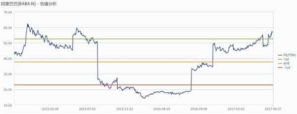 目前,阿里巴巴、腾讯控股、京东、网易的估值分别为57倍、52.2倍、-158.7倍、22.2倍。相较而言,Facebook、苹果、亚马逊、Netflix与Alphabet的估值为39倍、17倍、184倍、201倍、32倍。