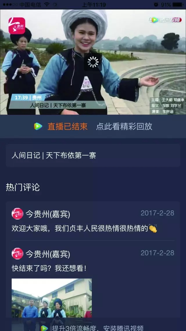 2月28日,今贵州网、客户端联合腾讯新闻、天天快报走进位于贵州黔西南州贞丰县的“脱贫攻坚看贵州”活动采访点之一——纳孔古寨,进行了题为《人间日记│天下布依第一寨》的图文和视频直播,长达2小时。5万多用户通过观看直播,随同记者的镜头和讲解,非常直观地领略到这个有着600多年历史、至今仍有4000多名布依族人定居的“中国布依风情第一寨”的清丽倩影。直播既向用户介绍了纳孔古寨脱贫致富的经验,也为纳孔古寨发展旅游作了一次生动宣传。(万群、高发强)