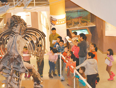 观众在北京古脊椎动物博物馆体验奇妙夜。资料图片