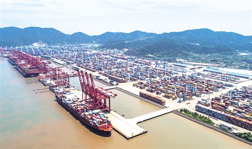 今年上半年,宁波舟山港货物吞吐量达5.15亿吨,同比增长11.3%,集装箱吞吐量完成1238.6万标准箱,同比增长14.6%。胡锦渠摄(新华社发)