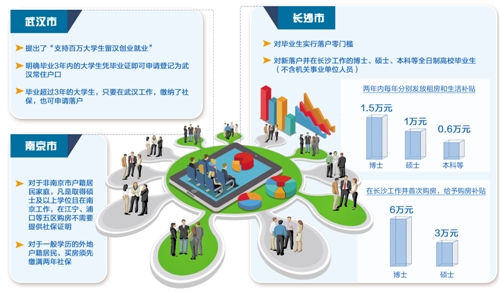 例如,武汉市提出了“支持百万大学生留汉创业就业”,明确毕业3年内的大学生凭毕业证即可申请登记为武汉常住户口;毕业超过3年的大学生,只要在武汉工作,缴纳了社保,也可申请落户。