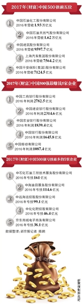 2017年《财富》中国500强榜单于7月31日出炉,中石化、中石油和中国建筑在内的3家国企继续“霸榜”,分别蝉联前三名。商业银行表现抢眼,上榜数量继续攀升的同时,也在盈利能力上“傲视群雄”。