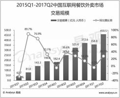 日前,易观发布2017年第2季度中国互联网餐饮外卖市场分析报告。数据显示,2017年第2季度,中国互联网餐饮外卖市场整体交易规模达459.5亿元人民币,环比上涨28.1%,与去年同期相比增幅达81.8%。在外卖市场用户使用情况方面,饿了么APP月活人数达3402.0万人,继续领跑市场。