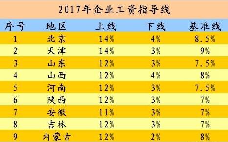 9省份发布2017年企业工资指导线