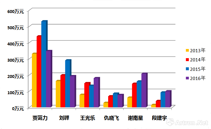 图表5-部分热点青年艺术家2013-16年成交均价的变化
