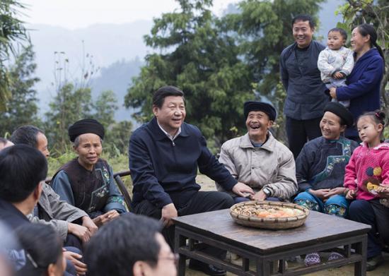 2013年11月,习近平在湘西土家族苗族自治州花垣县排碧乡十八洞村同村干部和村民座谈。新华社记者王晔摄