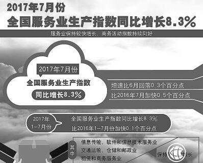 目前,我国服务业保持较快增长,商务活动指数持续向好。从市场预期看,7月份,服务业业务活动预期指数为60.4%,比上月提高0.4个百分点,连续3个月提高。