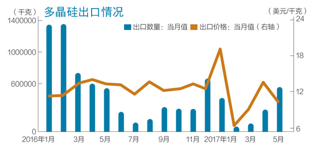 数据显示,2016年,我国光伏产品出口140亿美元,同比降10.3%。而1~8月份,出口额同比微降0.53%。从9月份开始,出口额连续同比下跌。其中,对美国出口下滑尤其严重,9~12月,对美出口额约1.4亿美元,仅为1~8月总出口额的一成左右。