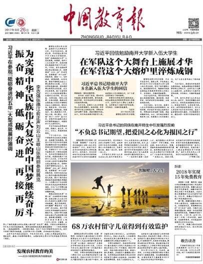 本报天津9月25日讯(见习记者 陈欣然)“习近平总书记给我校8名新入伍大学生回信啦!”今天,收到习近平总书记回信的南开大学师生激动不已,他们表示,总书记的回信不仅是对南开的光荣传统和南开学子以实际行动诠释责任与担当的肯定,更为学校今后的工作指明了方向,全校师生将不负总书记的期望,把爱国之心化为报国之行,扎根中国大地,建设一流大学,培养一流人才。