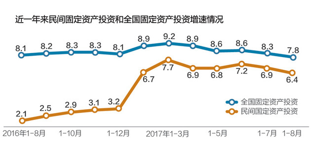 然而到2017年上半年,全国固定资产投资28.06万亿元,同比增长8.6%,其中民间投资17.02万亿元,增长7.2%,摆脱了2016年以来的持续低位运行局面。