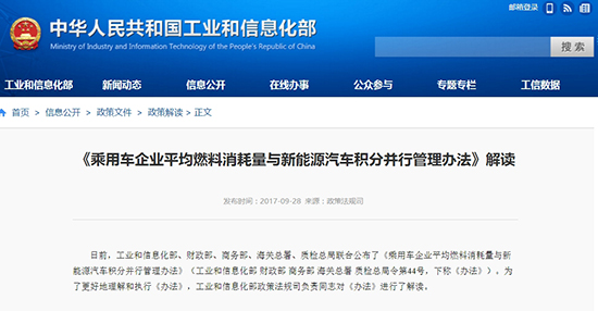 9月29日讯 昨日,工业和信息化部、财政部、商务部、海关总署、质检总局联合公布了《乘用车企业平均燃料消耗量与新能源汽车积分并行管理办法》(以下简称“《办法》”)。为了更好地理解和执行《办法》,工业和信息化部政策法规司对《办法》进行了解读。解读中提到,《办法》规定了乘用车企业平均燃料消耗量积分和新能源汽车积分的核算方法,并明确了与积分核算相关的实际值、达标值、目标值等指标的核算方式。
