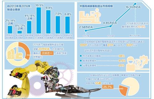 数据显示,2012年,中国制造业增加值总额是2.69万亿美元,比美国高35.6%;2016年,中国制造业增加值总额约为3.7万亿美元,约比美国高67%,在制造业总量上进一步拉大了与美国的差距。