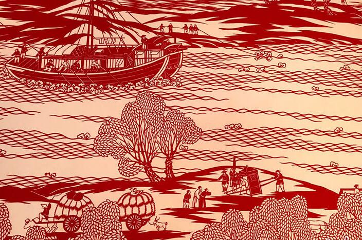《清明上河图》长幅剪纸局部 经济日报-中国经济网记者 魏金金/摄