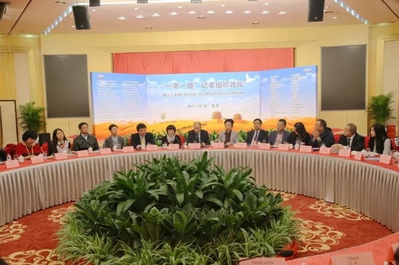10月16日上午,中国记协在十九大新闻中心举办“一带一路”记者组织论坛,来自“一带一路”27个国家的32名记者组织负责人应邀出席。与会代表围绕探索建立“一带一路”国家记者组织交流机制、开展新闻媒体合作等议题展开深入讨论,达成广泛共识并发布《“一带一路”记者组织倡议书》。