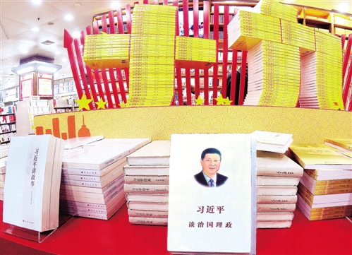 10月15日,北京王府井书店摆放的习近平总书记系列重要讲话学习读物。本报记者 翟天雪摄